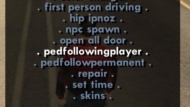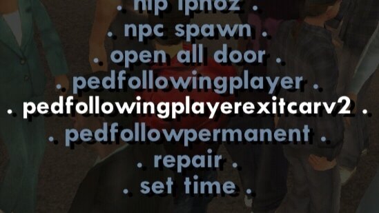 Here's what I've did so far, I manage to make peds following a player script from Sanny Builder.
